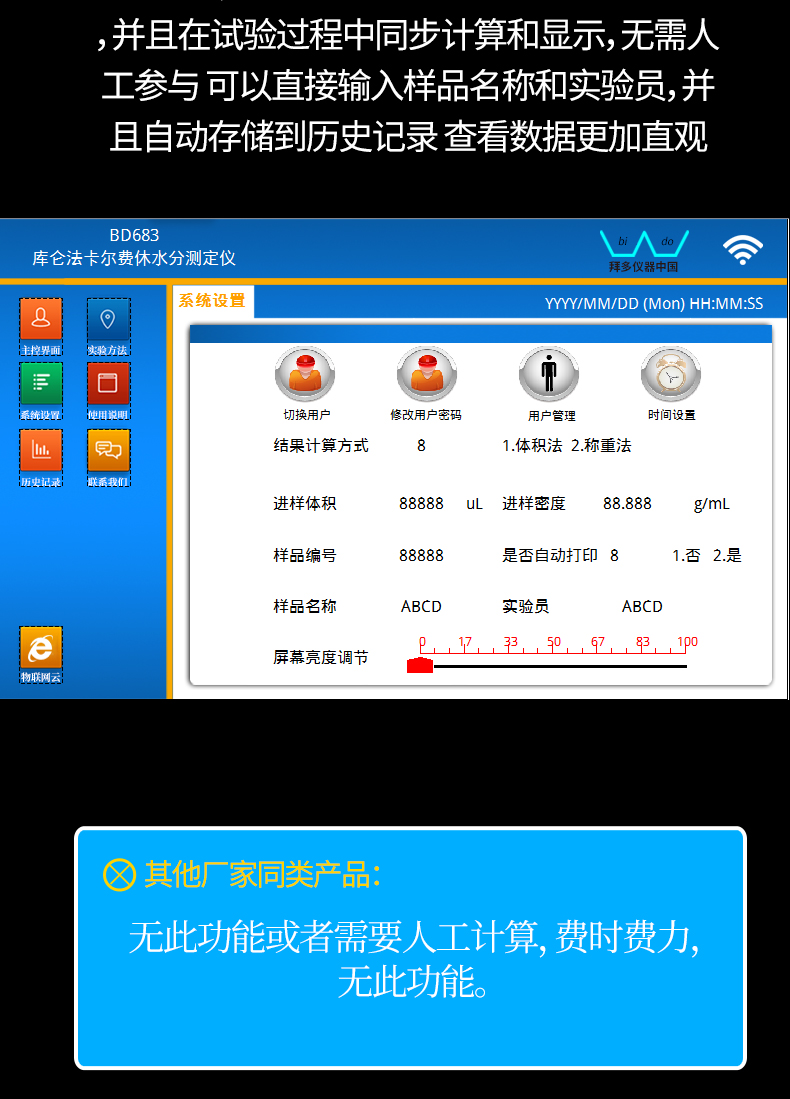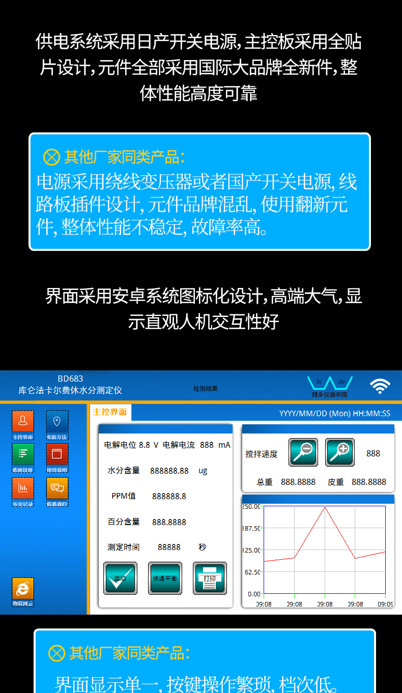 1.行業(yè)內首臺運行安卓系統(tǒng)的卡爾費休水分測定儀,使水分儀輕松跨入智能操控時代。