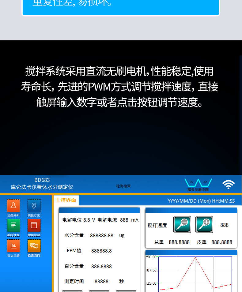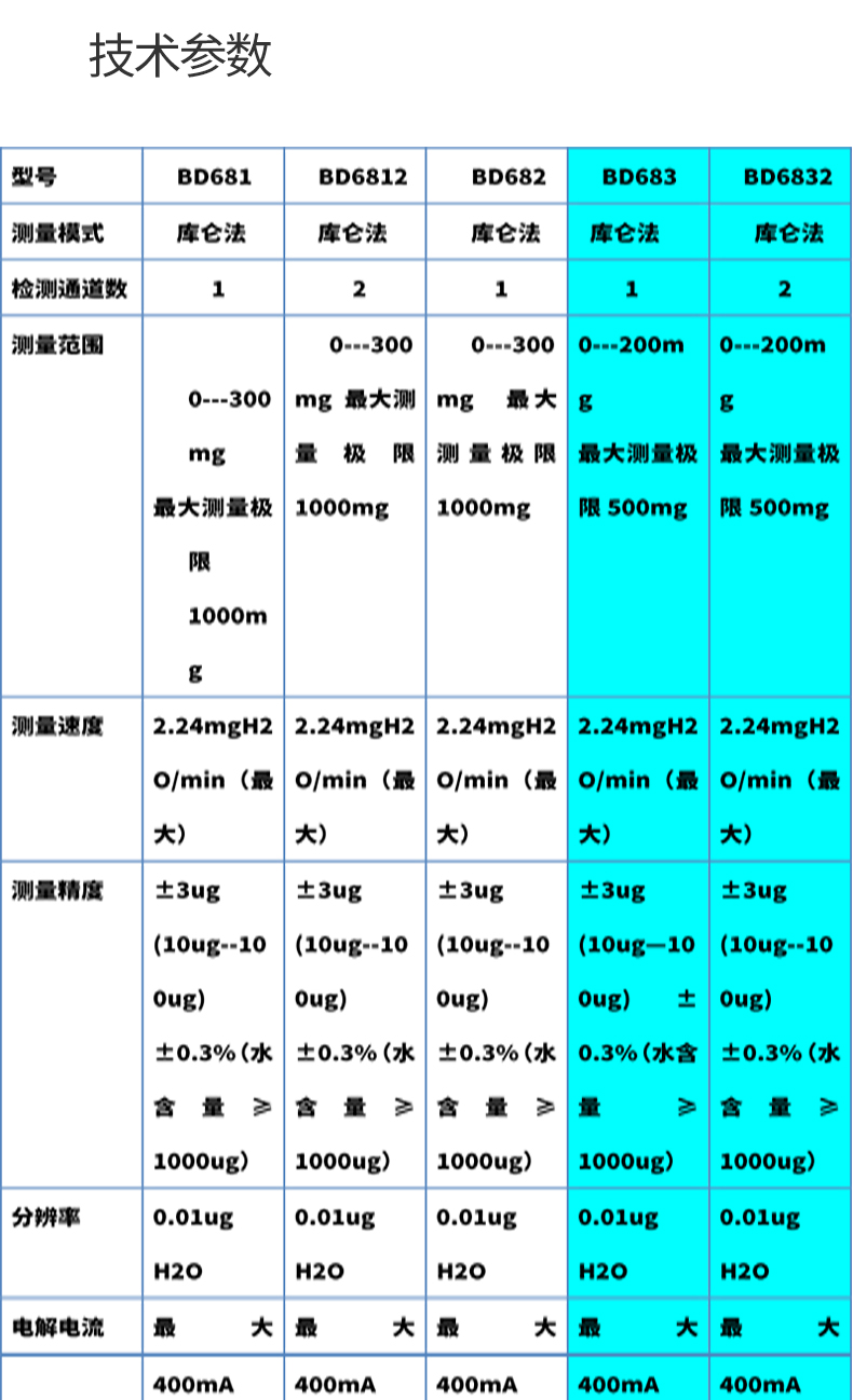 BD683和BD6832庫侖法卡爾費休水分測定儀主要特點: