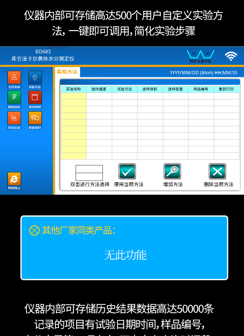 15.儀器內部可存儲高達200個用戶自定義實驗方法,一鍵調用,簡化實驗步驟,工作效率更高。